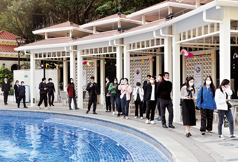 11月24日下午,貴州省銅仁市文體廣電旅游局領導及當地酒店業同行一行30人,在塘廈鎮文化服務中心相關領導的陪同下,來到塘廈三正半山溫泉酒店進行考察交流。塘廈三正半山溫泉酒店盛小超總經理陪同客人參觀了酒店漢宮中餐廳、沙利文西餐廳、溫泉漫畫展、溫泉博物館、皇家溫泉花園等等,并向客人詳細介紹了酒店的特色項目、經營管理、未來發展等相關情況。