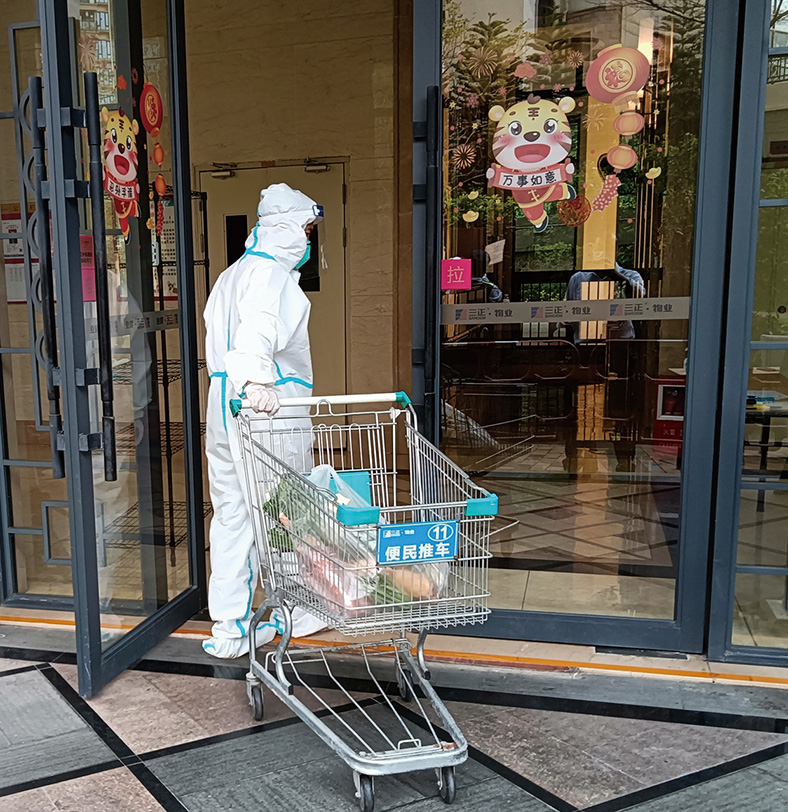 “疫情就是命令,防控就是責任”,自2月24日以來,東莞市新一輪疫情背景下,為全力保障廣大業主的健康安全,三正物業充分發揮“紅色物業”黨員先鋒模范作用,協助社區疫情防控,日夜堅守防控一線,為廣大業主筑起一道可靠的“戰疫防線”。疫情期間,小區實行封閉管理,只保留一兩個主出入口,秩序維護員24小時值崗,嚴格執行體溫檢測、查驗粵康碼/行程卡、規范佩戴口罩等防控措施,以保障小區業主的安全。清潔人員加大清潔力度,增加消殺頻次,為業主提供一個舒適、安全的“凈區”。客服人員對外來(返)莞人員進行嚴格排查,發現問題及時上報。同時,為小區業主提供運送生活必需品、包裹上門等貼心生活服務,并通過業主群/微信公眾號及時發布消息、張貼溫馨提示等方式向業主宣傳疫情防控相關知識,正向引導,形成聯防聯控。每一次全員核酸檢測通知發布后,三正物業都積極響應號召,迅速行動,黨員志愿者更是在項目小區檢測點或前往附近檢測點協助開展準備工作,搭帳篷、搬運物資、秩序維護、掃碼登記……全力以赴保障疫情防控工作穩步推進,為打贏疫情“阻擊戰”貢獻三正物業力量。