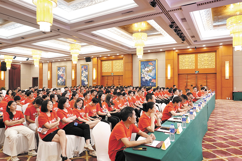 7月17日下午,橋頭三正半山酒店召開了“2023年上半年工作會議暨表彰大會”,集團助理總裁朱保當、李啟清總經理以及近260名員工出席了會議。