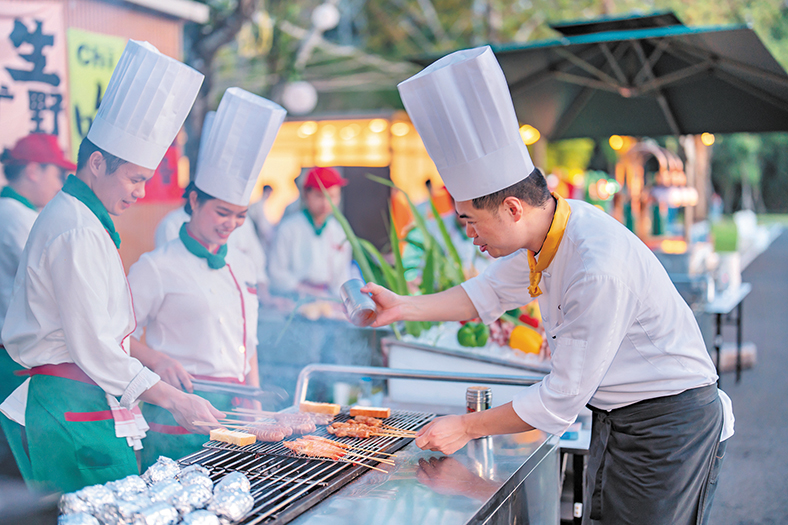 暑假期間,酒店西餐廳舉辦“東南亞美食節”,推出各類地道東南亞美食,為食客們帶來一場味蕾的盛宴。同時,泳池BBQ區域還舉辦“追星音樂會”娛樂項目,每晚7點至8點半,由酒店員工現場進行音樂表演及互動,為游客營造輕松愉悅的度假氛圍。