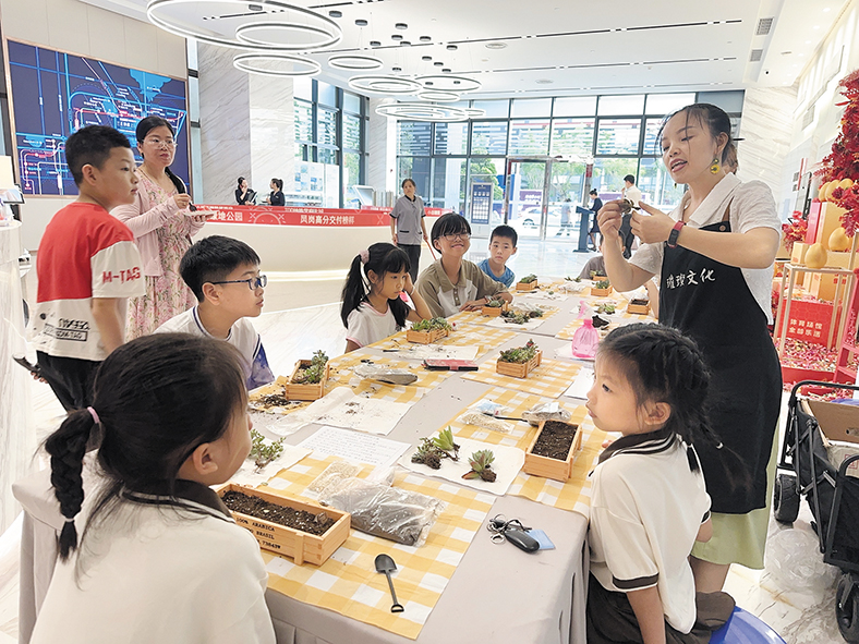 綠意盎然的多肉親子課堂則讓家長與孩子共同參與,攜手種植這些充滿生機的小生命,見證生命的成長奇跡。清涼一夏奶油膠電風扇DIY活動更是將時尚與實用相結合,讓孩子們親自動手制作屬于自己的夏日清涼小神器。而在花漾時光親子插花課堂中,孩子們則在老師的指導下,學習如何用指尖綻放藝術之美,共同享受這段美好的親子時光。