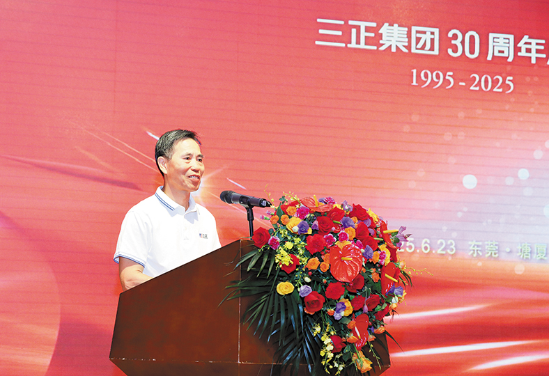 集團董事長兼總裁莫浩棠走上臺前,發(fā)表了熱情洋溢的講話。他動情地說:“這30年,是三正沐浴著黨和國家陽光雨露的30年。1995年三正集團在東莞這塊熱土上乘著改革開放的東風揚帆起航,一路走來,享受著國家不斷深化改革,擴大開放,持續(xù)加大對民營企業(yè)發(fā)展支持的大政紅利,搭著我國經濟高速發(fā)展的列車,不斷得到各級政府的深切關懷和大力支持,我們慶幸地遇到了創(chuàng)業(yè)興業(yè)的最好時期,這是三正有今天成就的根本原因。我無時無刻不在感恩黨中央和祖國為我們創(chuàng)造了這樣一個偉大的時代。”他深情回顧了集團創(chuàng)業(yè)的艱辛歷程,從最初的艱難起步到如今的枝繁葉茂,每一個階段都凝聚著三正人的拼搏與奉獻……董事長情真意切的話語,道出了三正人的心聲,激起了現場雷鳴般的掌聲。