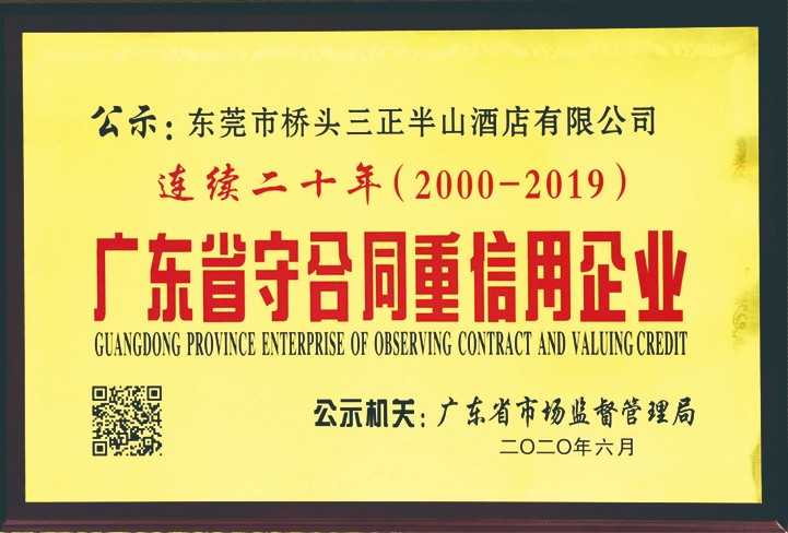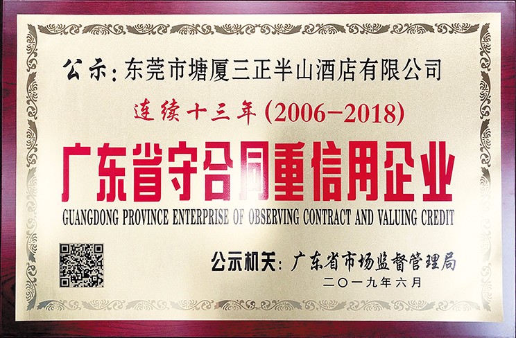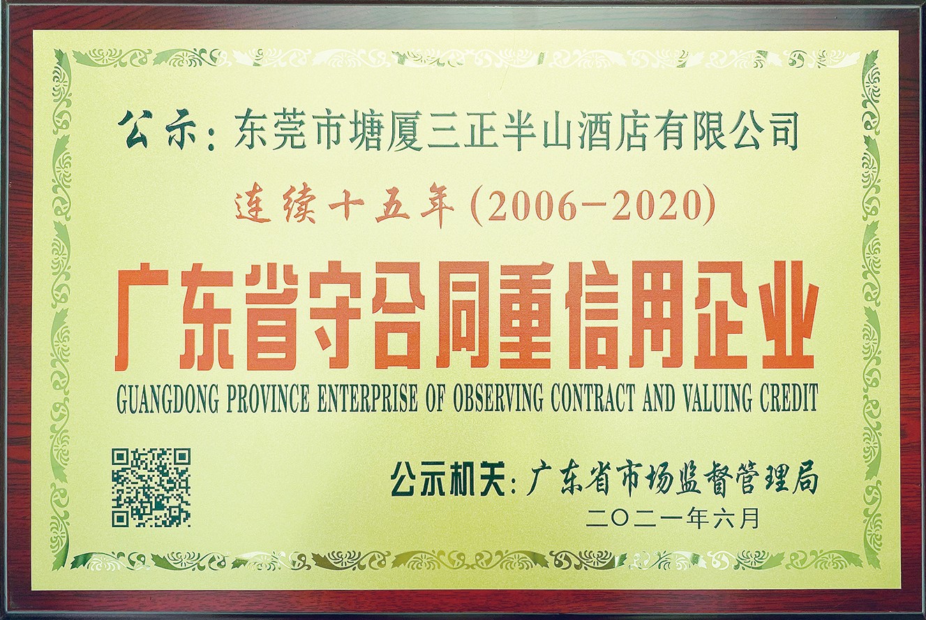 7.塘廈三正半山溫泉酒店: 連續十五年獲“廣東省守合同重信用企業”