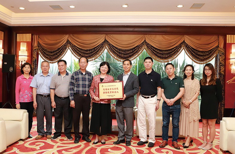 10.4月15日,廣東省原副省長、廣東省教育基金會理事長雷于藍,廣東省教育基金會副理事長兼秘書長鄭熾欽,副秘書長雷國增、謝紹熺、朱紅英等一行6人專程前來我集團,對我集團一直以來大力支持廣東教育事業及廣東省教育基金會的工作表示感謝,雷理事長代表廣東省教育基金會特別向我集團頒發了“造福社會立功德,捐助教育獻愛心”的牌匾。