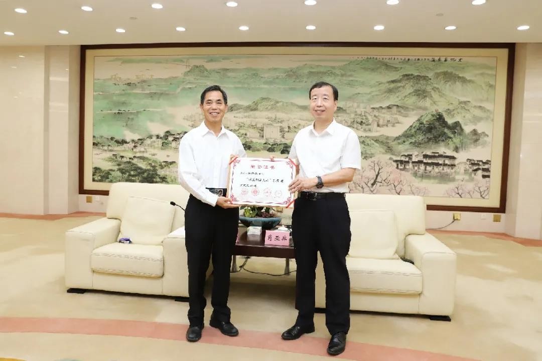 5.8月19日下午,東莞市委書記、市人大常委會主任肖亞非會見了載譽歸來的第三屆全國“最美擁軍人物”莫浩棠。會見活動由東莞市政府副市長黎軍主持,李克強副廳長宣讀了表彰通報,肖亞非書記向莫浩棠董事長頒發了榮譽證書。
