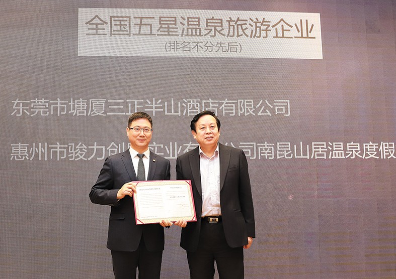 2.12月6日,廣東省溫泉行業協會四屆六次理事會在塘廈三正半山溫泉酒店舉行,會議期間,中國旅游協會溫泉旅游分會執行副會長張越向塘廈三正半山溫泉酒店頒發了“全國五星溫泉旅游企業”榮譽證書。