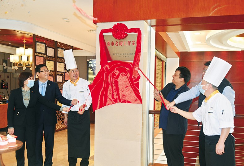 8.3月11日,塘廈三正半山溫泉酒店舉行了簡單而隆重的“東莞市名廚工作室”掛牌儀式。塘廈鎮人力資源和社會保障局的曾穗捷局長、林立堅委員、羅永昌股長等有關領導,集團物資采購供應中心黎桂英總經理、莫淑敏總經理助理,塘廈三正半山溫泉酒店盛小超總經理、周慧清助理總經理,以及酒店名廚工作室的成員出席了掛牌儀式。