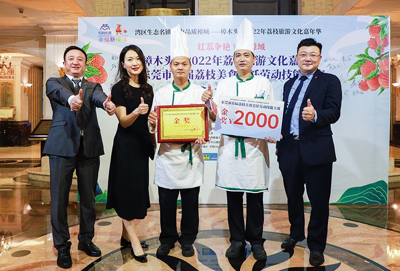 6.7月6日下午,樟木頭2022年荔枝旅游文化嘉年華系列活動——東莞市首屆荔枝美食烹飪勞動技能大賽在樟木頭三正半山酒店舉行,來自樟木頭鎮的18家餐飲企業選手同臺競技,最終樟木頭三正半山酒店選手出品的“觀音渡寶綠”奪得金獎。