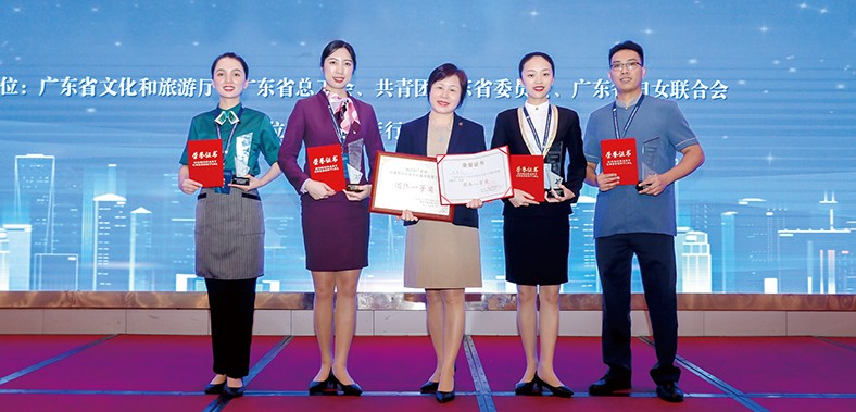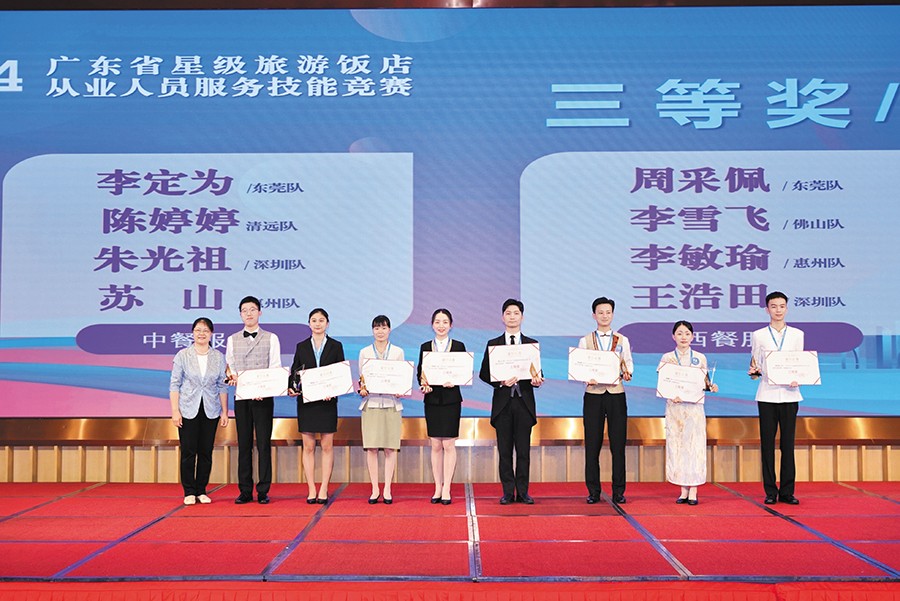 3.9月6日下午,由廣東省文化和旅游廳、省總工會、團省委、省婦聯聯合舉辦的“2024年全省星級飯店從業人員服務技能競賽活動”在廣州圓滿結束。塘廈三正半山溫泉酒店的周采佩、李定為兩位員工代表東莞市參賽,并憑借出色表現為東莞奪得團體三等獎。