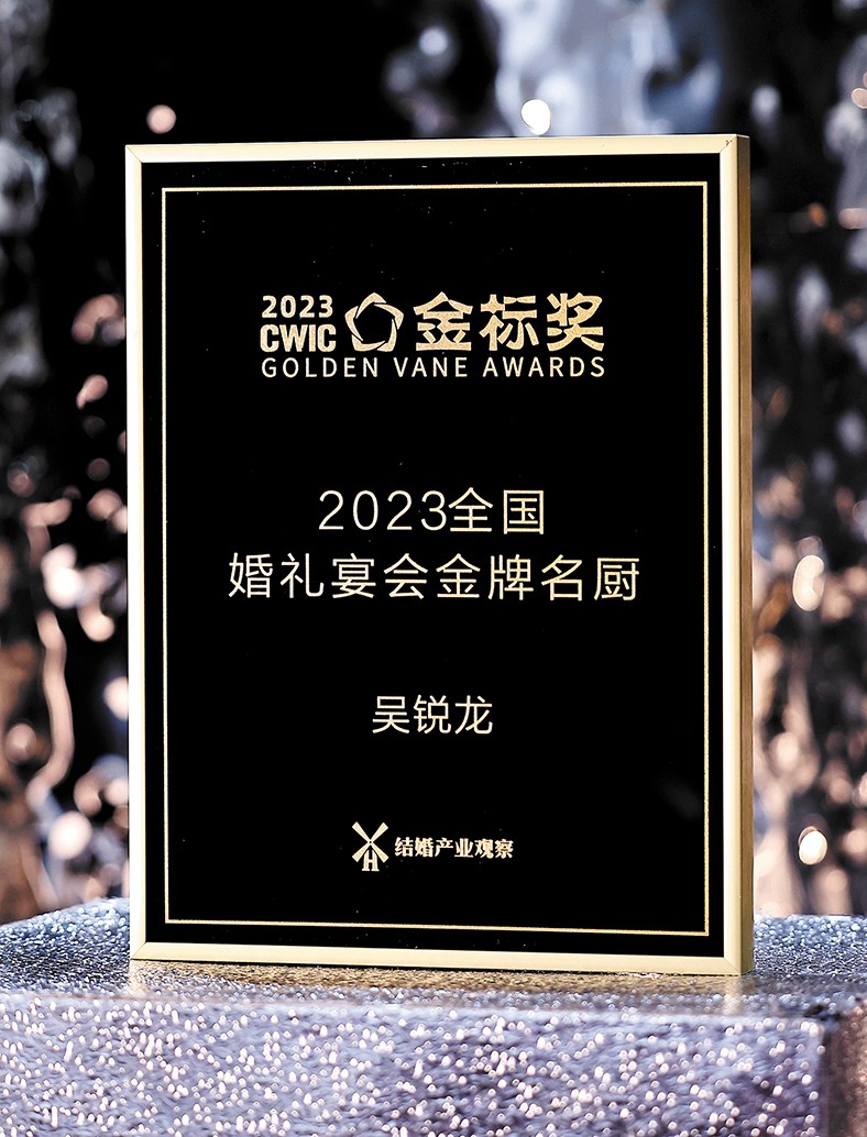 4.12月5日,樟木頭三正半山酒店行政總廚吳銳龍榮獲金標獎2023全國婚禮宴會金牌名廚獎。