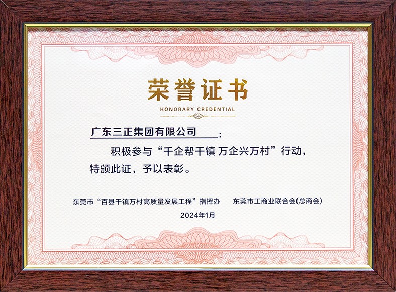 13.1月4日,企業助力東莞“百千萬工程”對接會召開,會上我集團受到表彰,被授予“積極參與‘千企幫千鎮 萬企興萬村’行動”榮譽證書。
