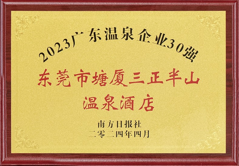 2.12月,塘廈三正半山溫泉酒店入選“2023市級文明旅游示范單位”和“2023 年東莞市文旅體企業20 強”。