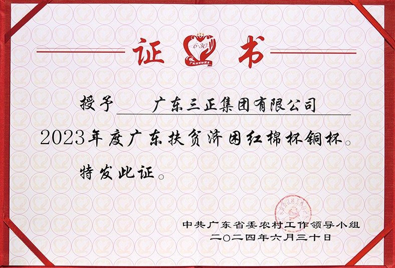 3.廣東省扶貧開發領導小組授予我集團“2011年度廣東扶貧濟困紅棉杯”銅杯,并頒發了證書。
