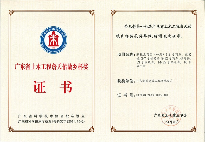 1.11月,第十六屆廣東省土木工程詹天佑故鄉杯獎評審結果揭曉,三正鵬程上花園(一期)1-2號商業、住宅樓,3-7號住宅樓,8-12商業、住宅樓,13號垃圾房,14-15號配電房,16號地下室憑借其卓越的品質和前瞻性的設計,獲此殊榮。