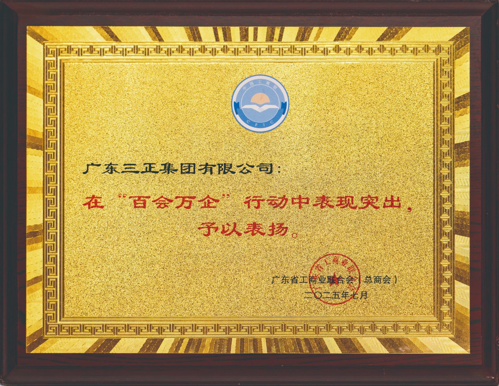3.7月7日至8日,全省工商聯實施“百千萬工程”推進會在清遠召開。會上宣讀了《關于表揚參與“百會萬企”行動表現突出商會和民營企業的通知》,并為受表揚單位頒牌,我集團在“百會萬企”行動中表現突出獲得省工商聯通報表揚。